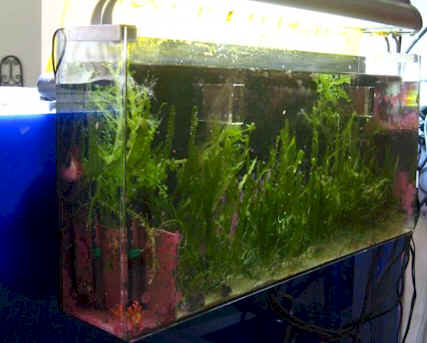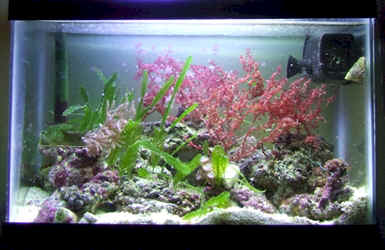 In the marine aquarium there are three main types of filtration that are essential to a clean and stable environment. They are mechanical, biological and chemical. There are many commercially available products that combine these in one unit, such as canister filters, power filters and trickle filters but most are not suitable for a marine planted aquarium. Many of these designs will become nutrient sinks in time and can release large amounts of nitrates and phosphates into the aquarium water. While flow-through filters may be beneficial for some heavily planted aquariums and even necessary, generally it will create conditions favorable for excessive, undesired micro algae growth without regular cleaning of filter material. Maintaining an aquarium with marine macro algae and plants is often a balancing act between controlling the buildup of nitrates and organic material and providing just enough for a healthy ecosystem.
