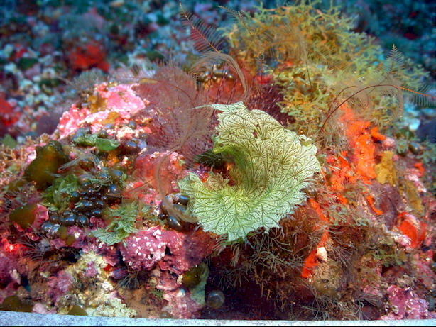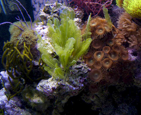 Caulerpa species are among the fastest growing macro algae and will need regular pruning and control. Fish may be employed to do the task, but will often devour entire colonies in a short time. Simply removing plant material is the best method of control. With Caulerpa, simply divide the colony into even parts by pinching the rhizome between your fingers or by using surgical style scissors. Most species will form a ball of mucus at the rhizome and/or secrete a small amount of organic chemical, but this will heal quickly. Red macro algae grow much slower than green, but several species such as Botryocladia and Halymenia can overgrow an aquarium. Red algae can be cut or torn at any location without harming the plant. If a holdfast is present, growth should be removed from the top portion, as this attachment takes time to develop. Regular trimming of clear or old growth is recommended as some larger species will reach a critical biomass as nutrients are exhausted in the aquarium. Some species will release a chemical when cut, but the effect on other species is minimal. For the most part, brown macro algae are very slow growing and need very little maintenance. Sargassum can grow quite large and may need to be trimmed occasionally to allow light to reach the bottom of the aquarium and other species.