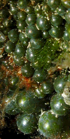 Species of Valonia occur worldwide in tropical waters on reefs as well as shallow water habitats. All species of Valonia feature variable sized, fluid and air filled balls or spheres, in shades of light to dark green.  Studies have shown that several varieties can actually release spores to form a separate, but related species of macro algae known as Derbesia. Species of Valonia are generally regarded as pests in marine and invertebrate aquariums, so much so, that aquarists employ a number of tactics to rid themselves of this highly invasive algae.  In the planted aquarium however, they can be a beautiful and interesting species to care for. It most commonly is introduced to the marine aquarium industry as a resident on imported and cultured live rock.